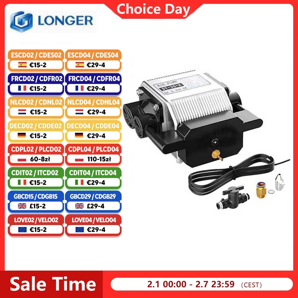 ♡Szybki podglądZestawy wspomagania powietrzem do grawerki laserowej Longer RAY5 5W 10W 20W, maksymalny przepływ powietrza 30 l/min, AC 220V 50HZ, maksymalna moc 16W, maksymalne ciśnienie 0,03 MPa257.19 PLNGorące★★★★★★4.9