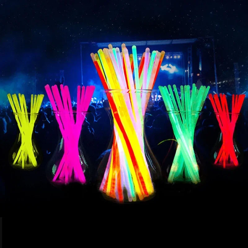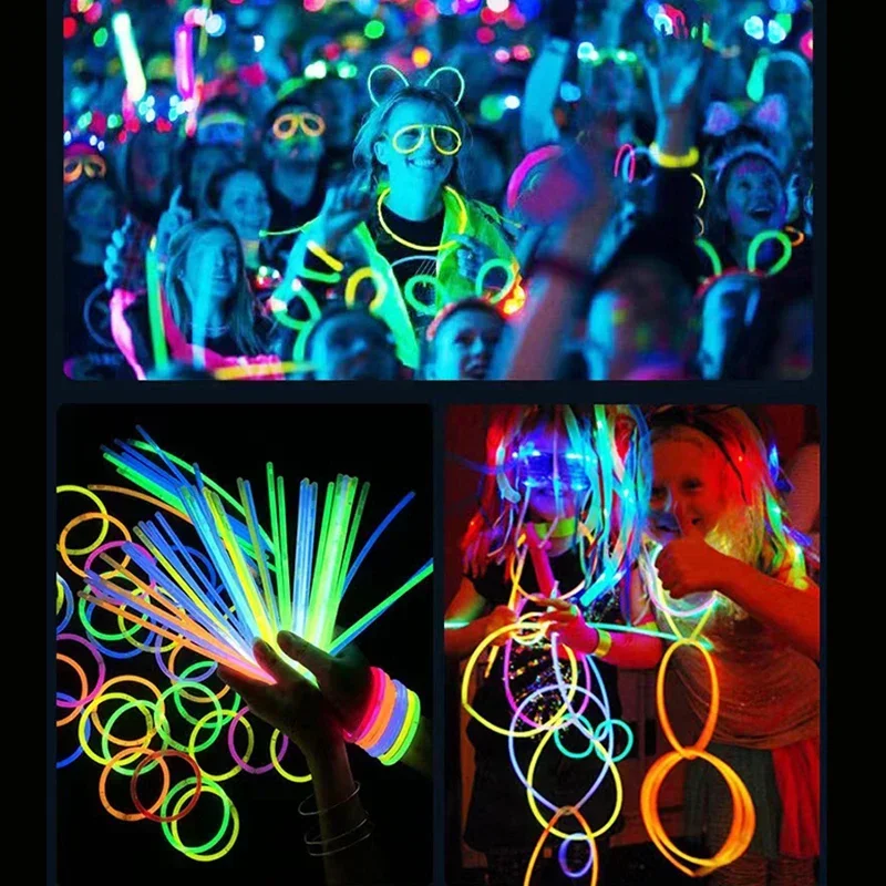 100 sztuk Camping pałeczki fluorescencyjne fluorescencyjne świecące naszyjniki bransoletki na neonowe przyjęcie urodzinowe Halloween materiały ślubne - TopDealBox