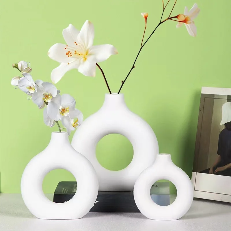 1szt Styl skandynawski Kreatywny kształt koła Plastikowy wazon Dekoracja domu Salon Ozdoby stołowe Okrągła kompozycja kwiatowa - TopDealBox