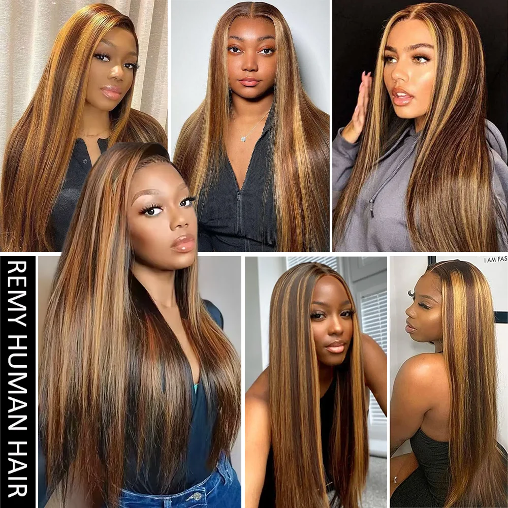 200 gęstość P4/27 podkreśl pełna koronka z przodu wstępnie oskubane kolorowe proste peruki z przodu 36 cali HD przezroczyste koronkowe peruki z ludzkich włosów - TopDealBox