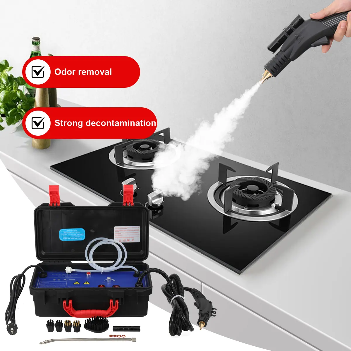 3000W Myjka parowa wysokociśnieniowa Wysokotemperaturowa maszyna do czyszczenia parą Wielofunkcyjny, wytrzymały parowiec do okapów kuchennych i samochodów - TopDealBox