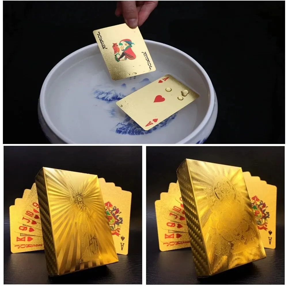 55 szt. Złote Karty do Gry Zabawne Karty z Folii Złotej Zestaw Kart do Pokera Karty Magiczne 24K Złoto Plastikowa Folia Kart do Pokera Trwałe Wodoodporne Karty - TopDealBox