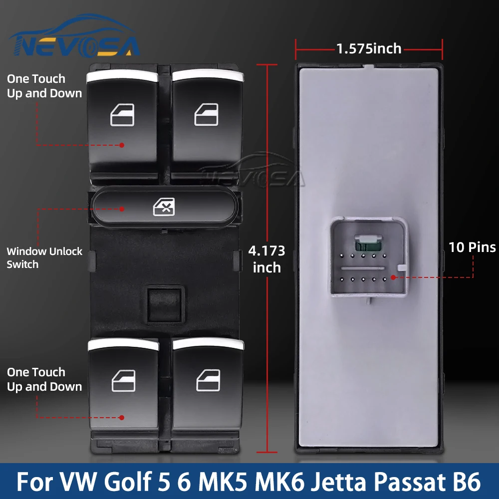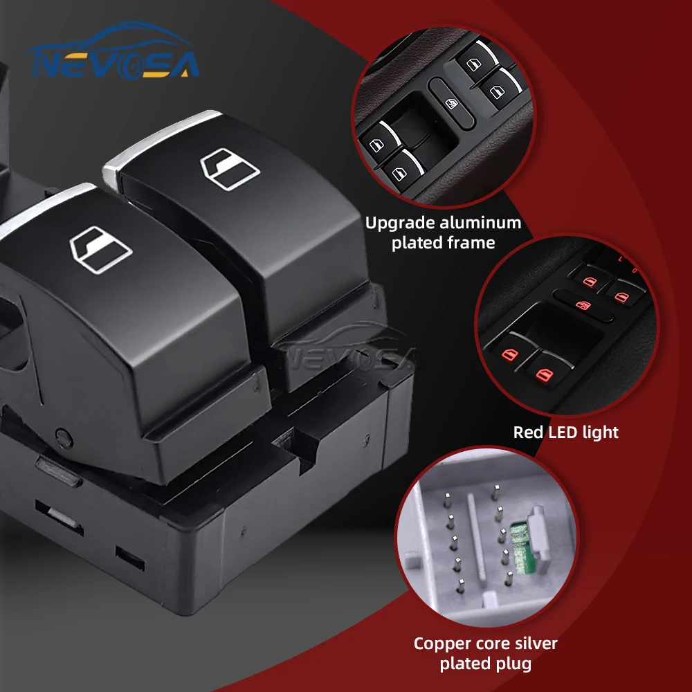 5ND959857 Przełącznik Sterowania Szybami Elektrycznymi Pasażera VW Golf 5 6 GTI MK5 MK6 Jetta Tiguan Passat B6 CC Fabio Power Master 7L6959855B Czerwony - TopDealBox