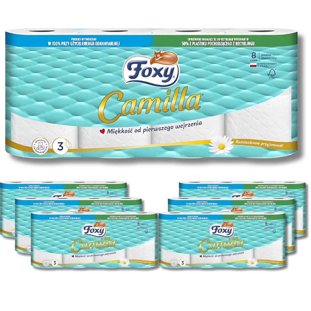 ♡Szybki podglądPapier toaletowy Foxy Camilla o zapachu rumianku (8 rolek) x 7 opakowań85.21 PLNPLN 92.80Gorące★★★★★★4.7