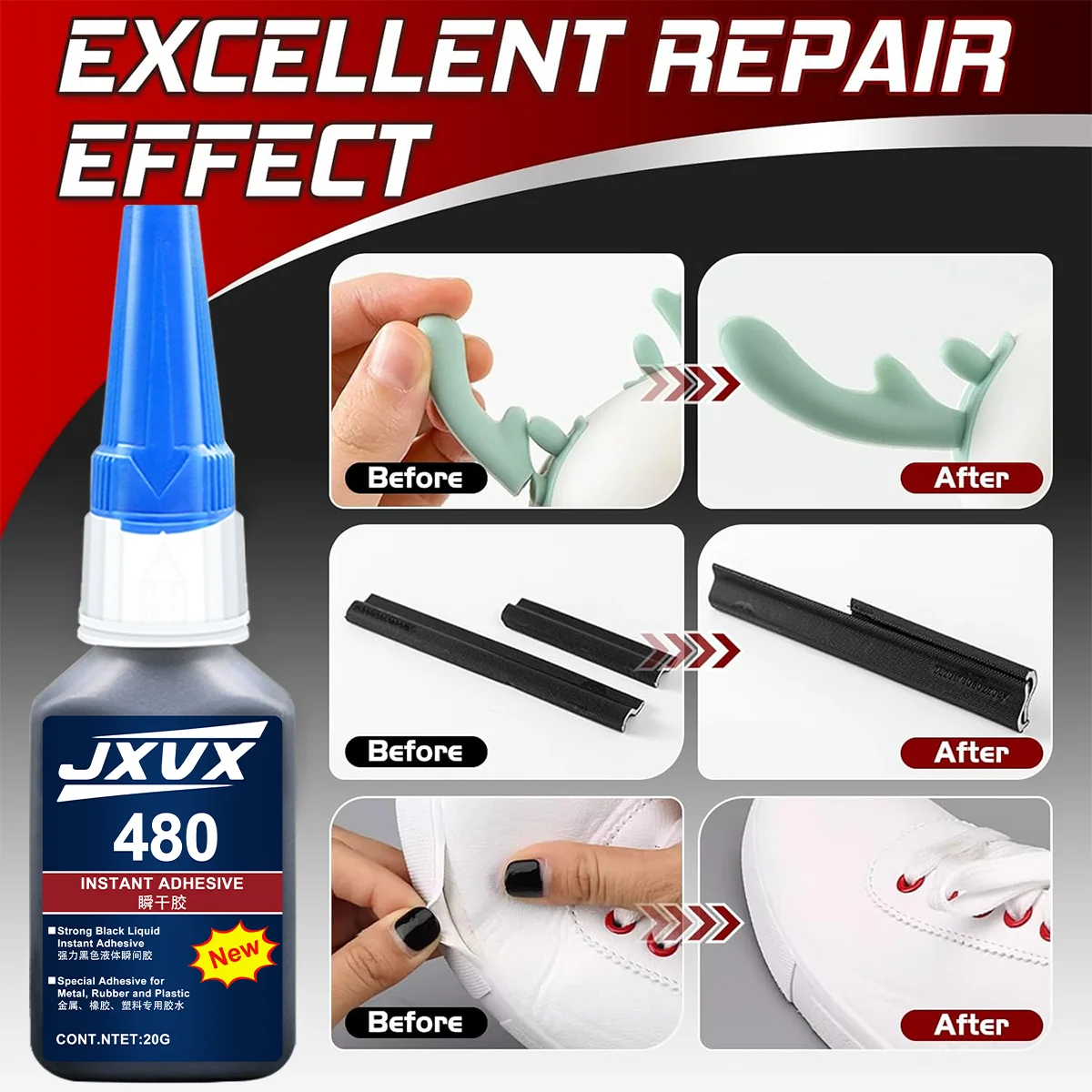 ♡Szybki podglądJXVX 401 Uniwersalny Klej Cyanoakrylowy 20g Szybki Klej Natychmiastowy do Gumy Drewna Szkła Mocny Klej do Wszystkich Materiałów8.61 PLNPLN 33.52Gorące★★★★★★4.8