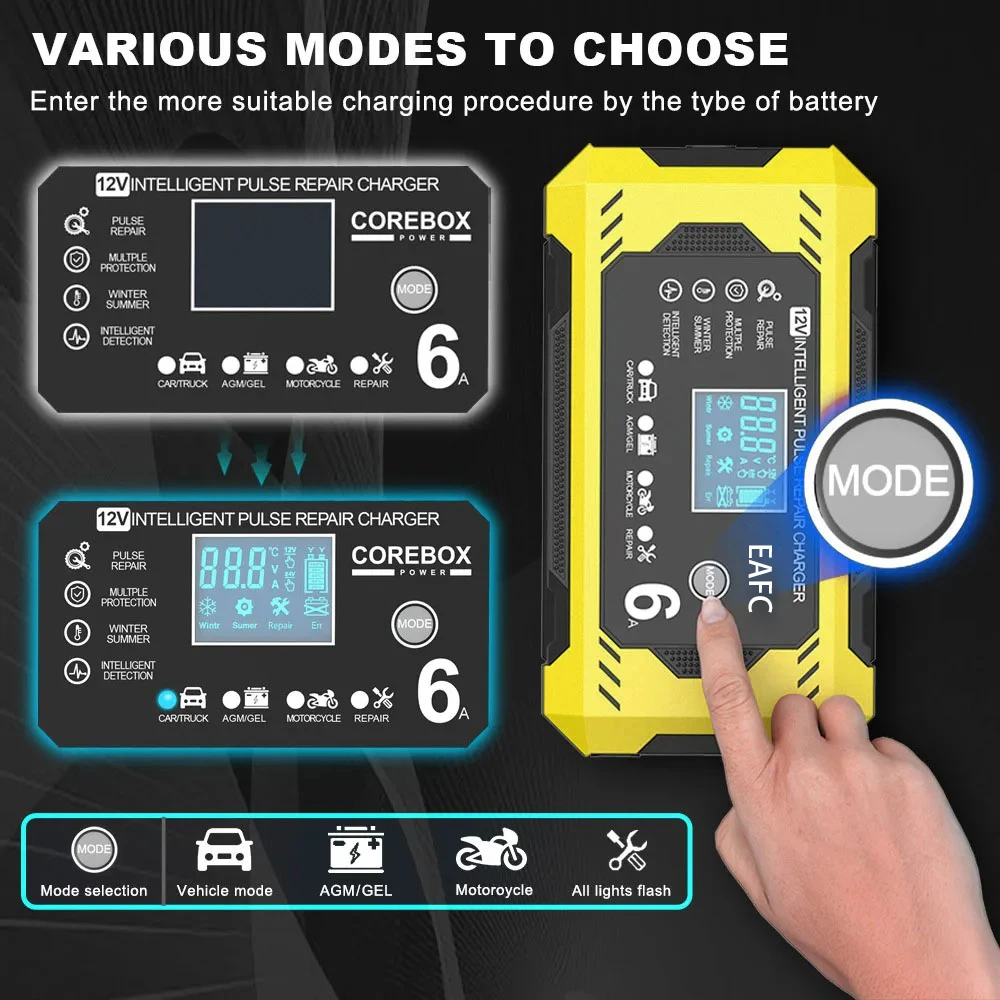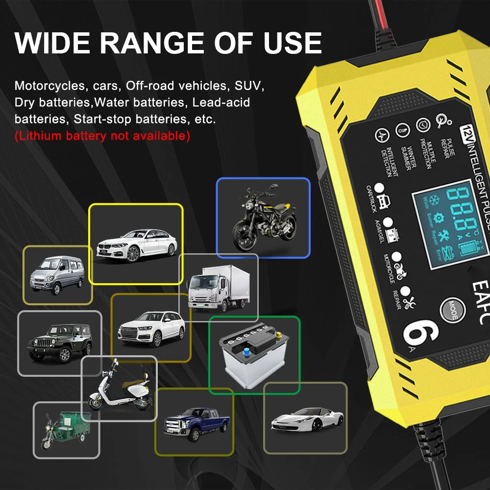 ♡Szybki podglądŁadowarka samochodowa 6A 12V Urządzenie do ładowania akumulatorów samochodowych i motocyklowych Akumulator kwasowo-ołowiowy Inteligentna naprawa Wyświetlacz LCD56.99 PLNPLN 215.67Gorące★★★★★★4.9