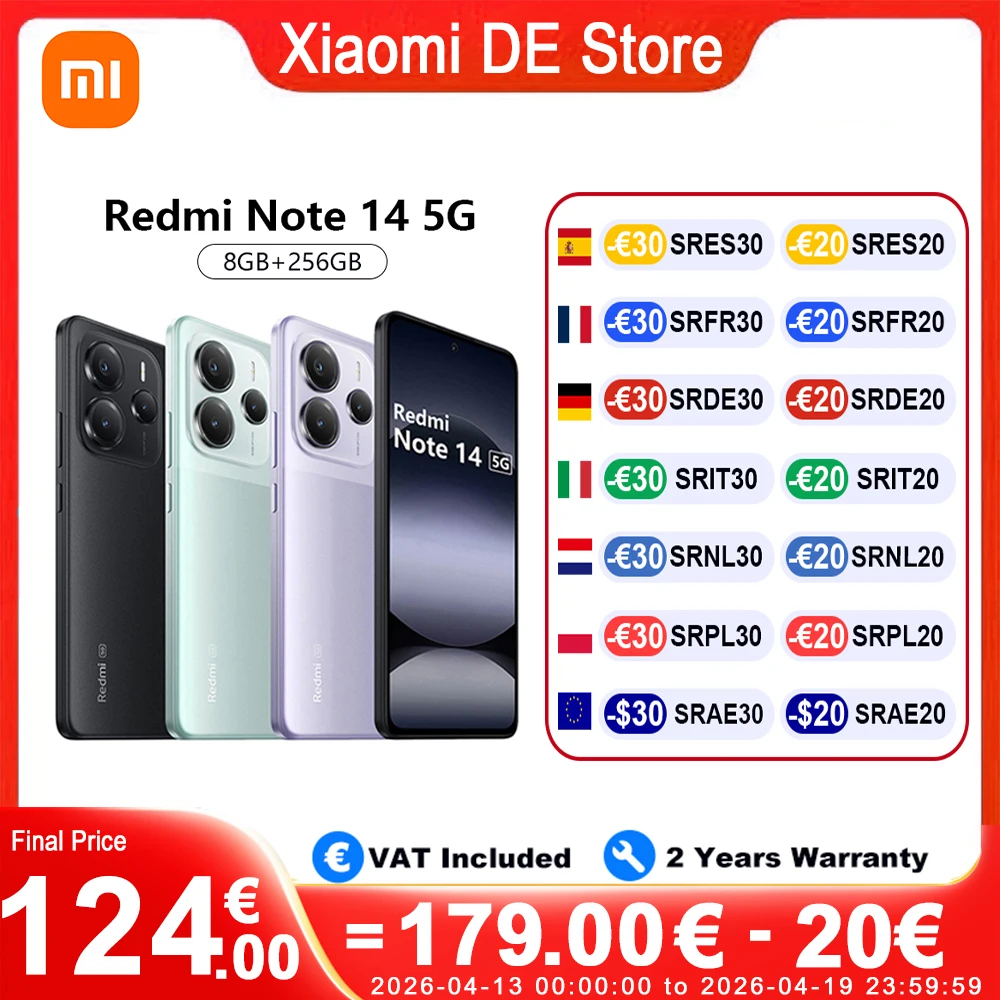 ♡Szybki podgląd(Tylko w kolorze Coral Green) Wersja globalna Xiaomi Redmi Note 14 5G 6,67'' AMOLED 120Hz Ładowanie 45W Prawdziwa kamera 108MP 5110mAh792.59 PLNGorące★★★★★★4.9