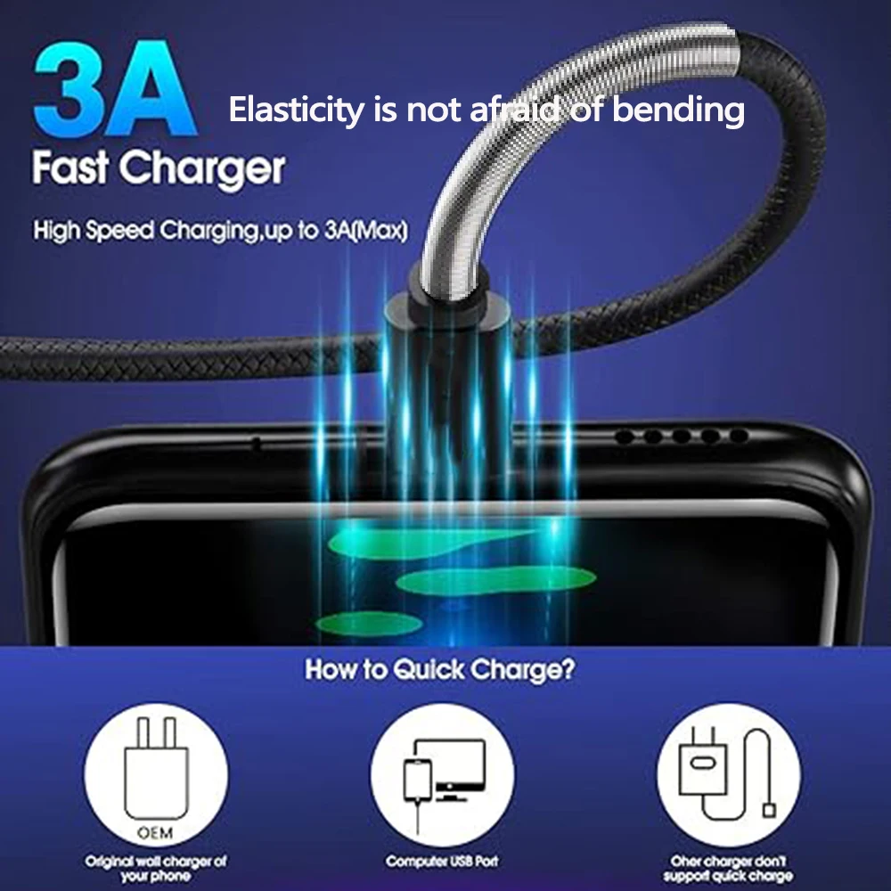Kabel USB A do Type C Synchronizacja danych 3A Szybkie ładowanie Elastyczny kabel ładowarki TPE do telefonu komórkowego Samsung Huawei Android Typec 1M - TopDealBox