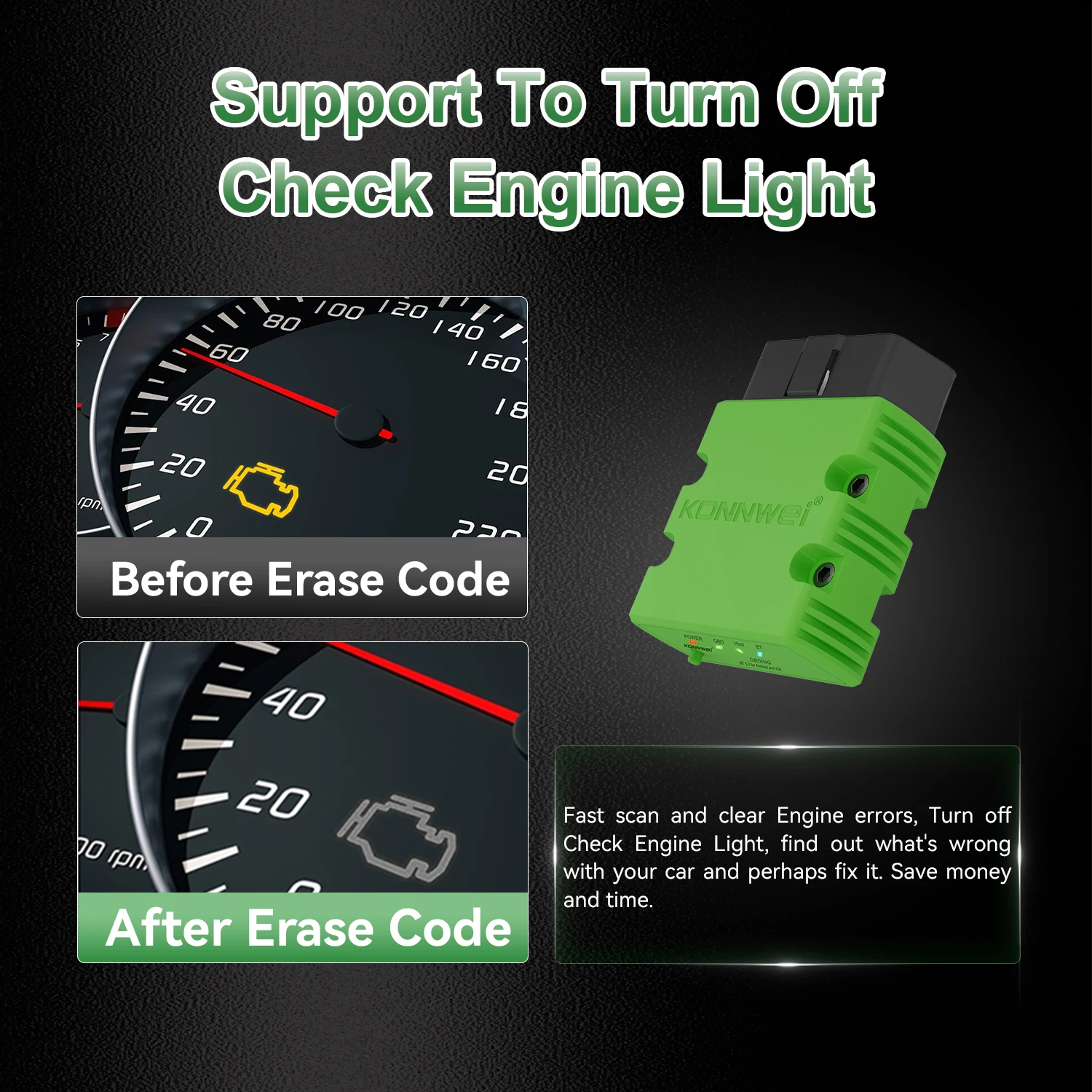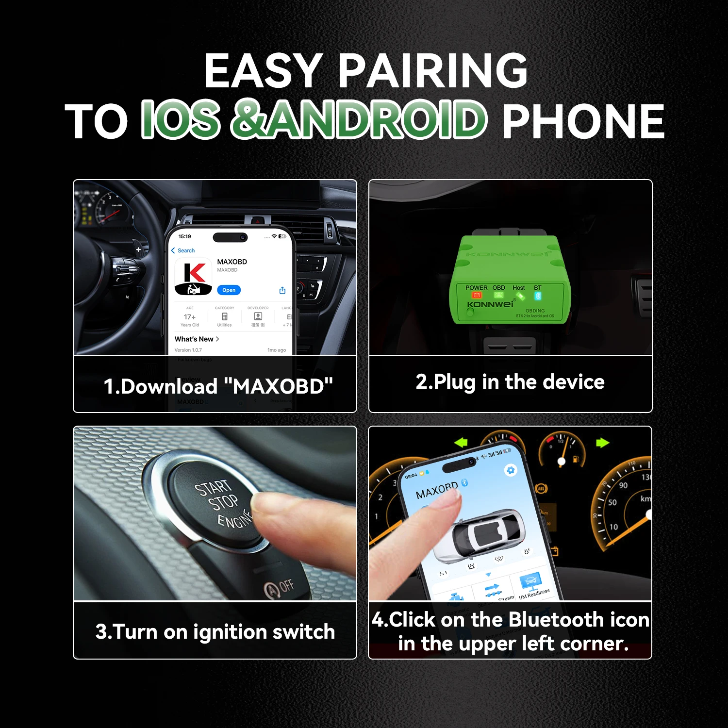 KONNWEI 12V Samochodowy Skaner Diagnostyczny OBD z Połączeniem Bluetooth MAXOBD Oczyszczanie Kodów Błędów Silnika Zrzuty Ramki Zamarzającej Skaner OBD2 - TopDealBox