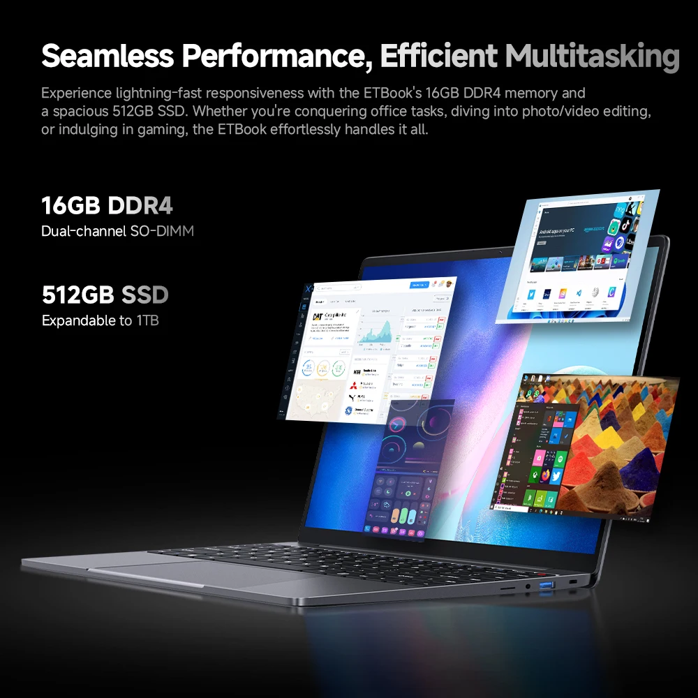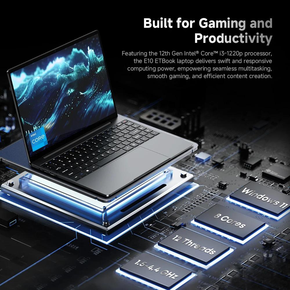 Laptop ETBook Intel Core i3-1220P, 16GB DDR4, 512GB SSD, 8 rdzeni, 12 wątków, ekran 14 cali 2K, WiFi6, długi czas czuwania, Windows 11. - TopDealBox