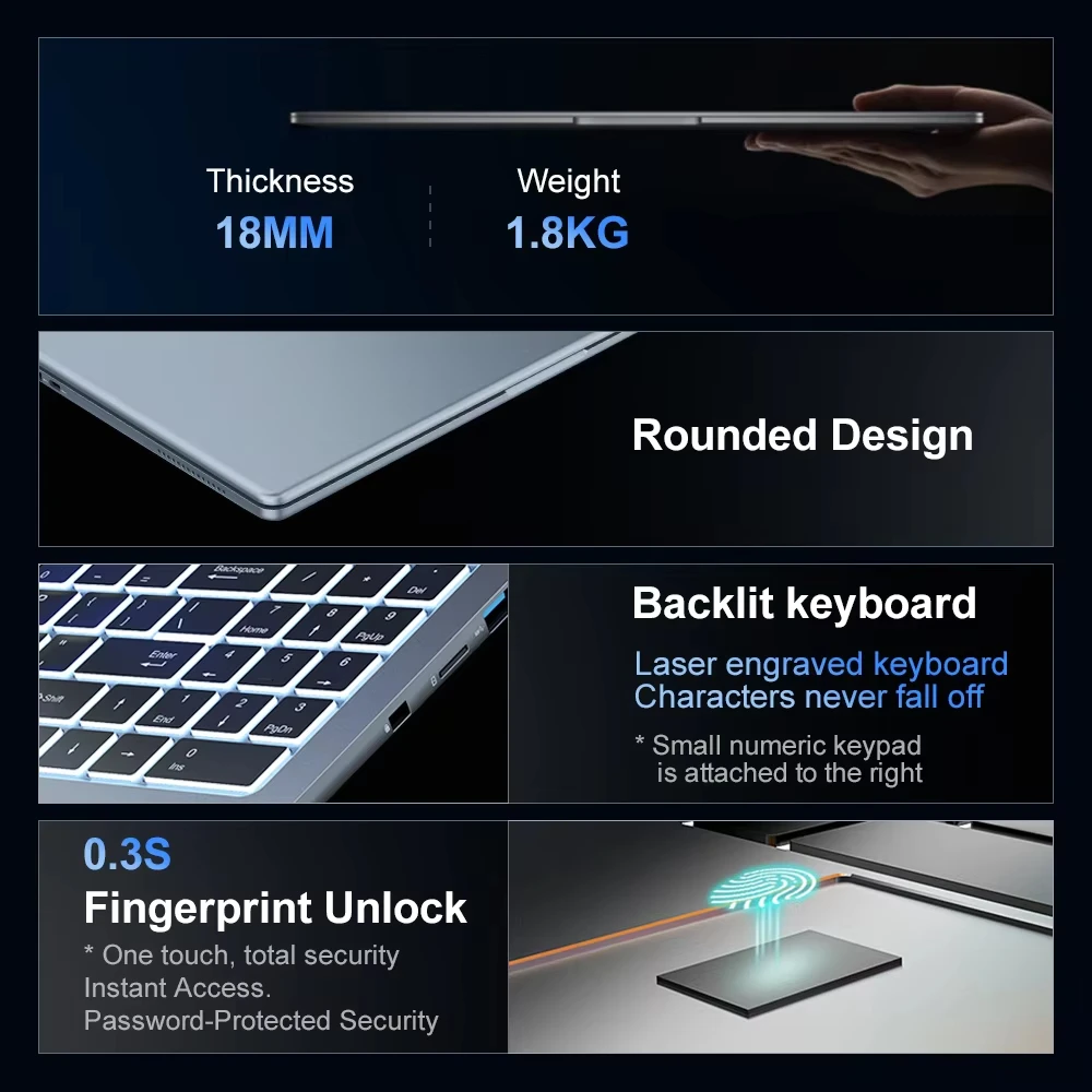 Laptop Ninkear N16Pro 16 cali 2.5K 120Hz Intel Core i7-12700H WiFi 6 16GB RAM 1TB SSD Komputer Przenośny do Biura Windows 11 Notebook - TopDealBox