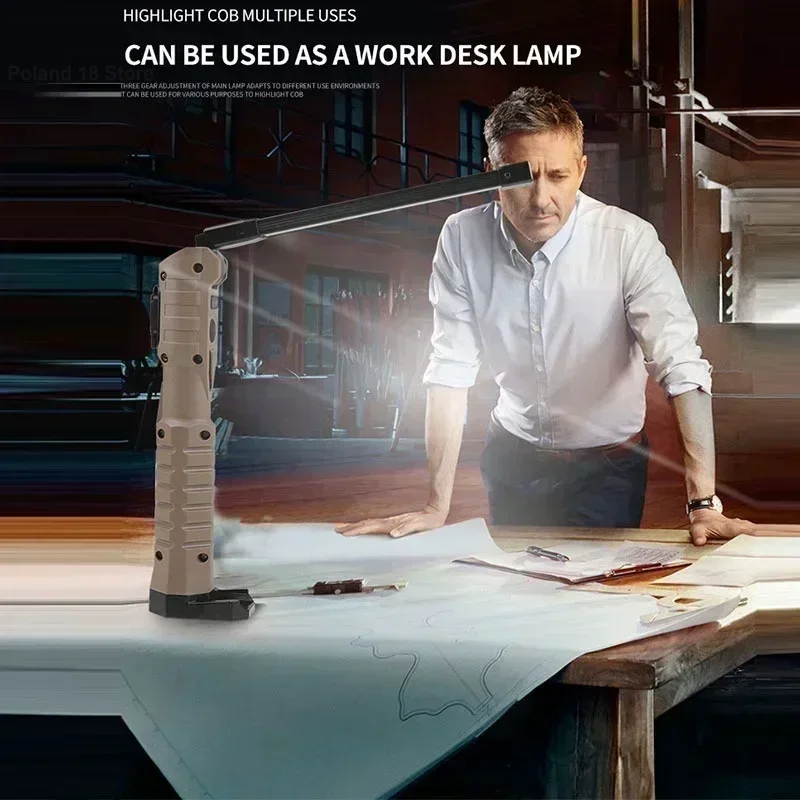 Latarka robocza LED COB, ładowana przez USB, z magnetyczną podstawą i haczykiem, awaryjna lampa inspekcyjna do samochodu, czerwona SOS - TopDealBox