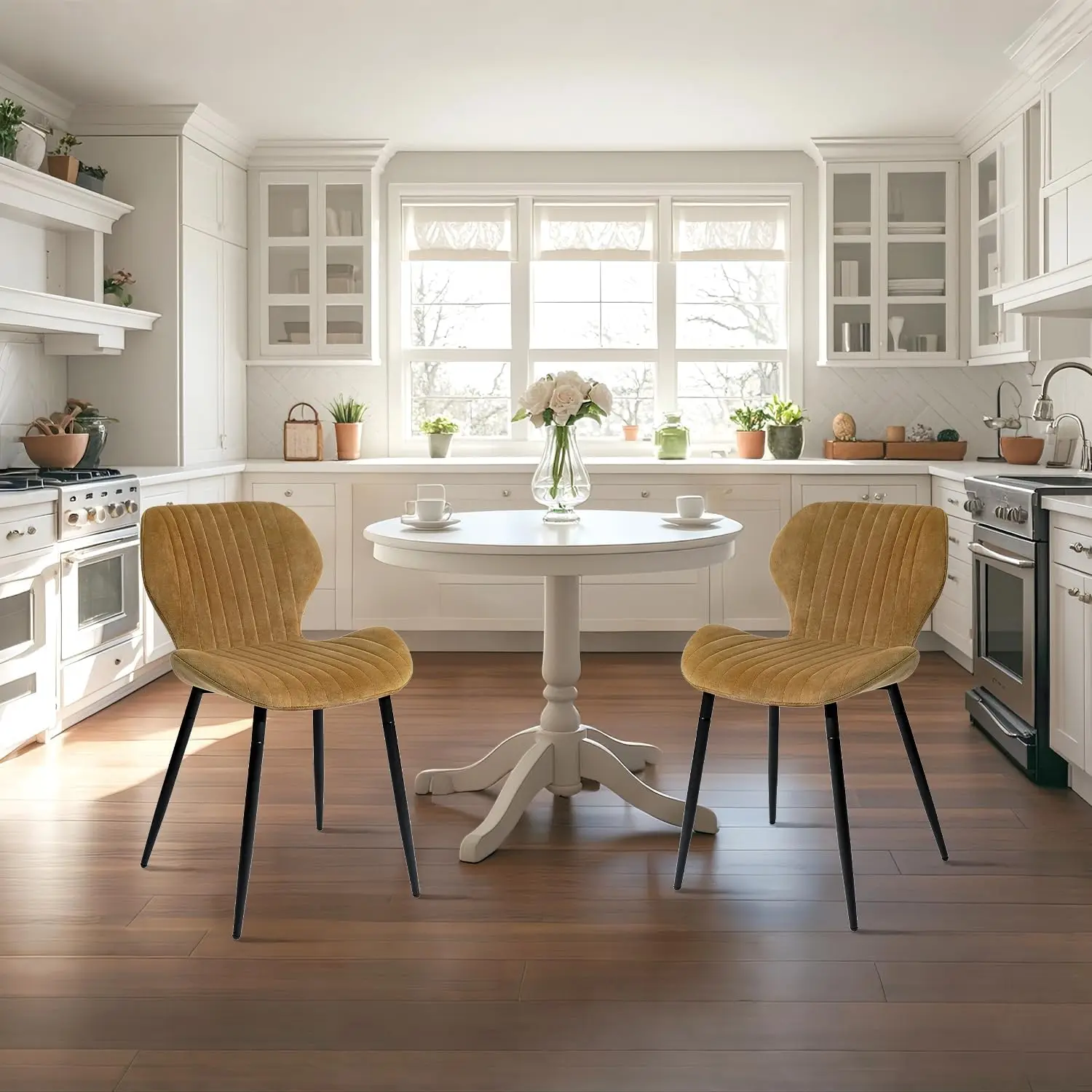 Nowoczesne tapicerowane krzesła do jadalni w stylu mid-century z metalowymi nogami, krzesła akcentujące do kuchni, salonu, zestaw 2 szt. - TopDealBox