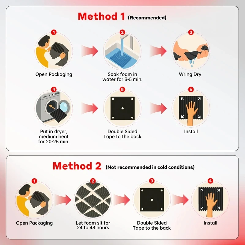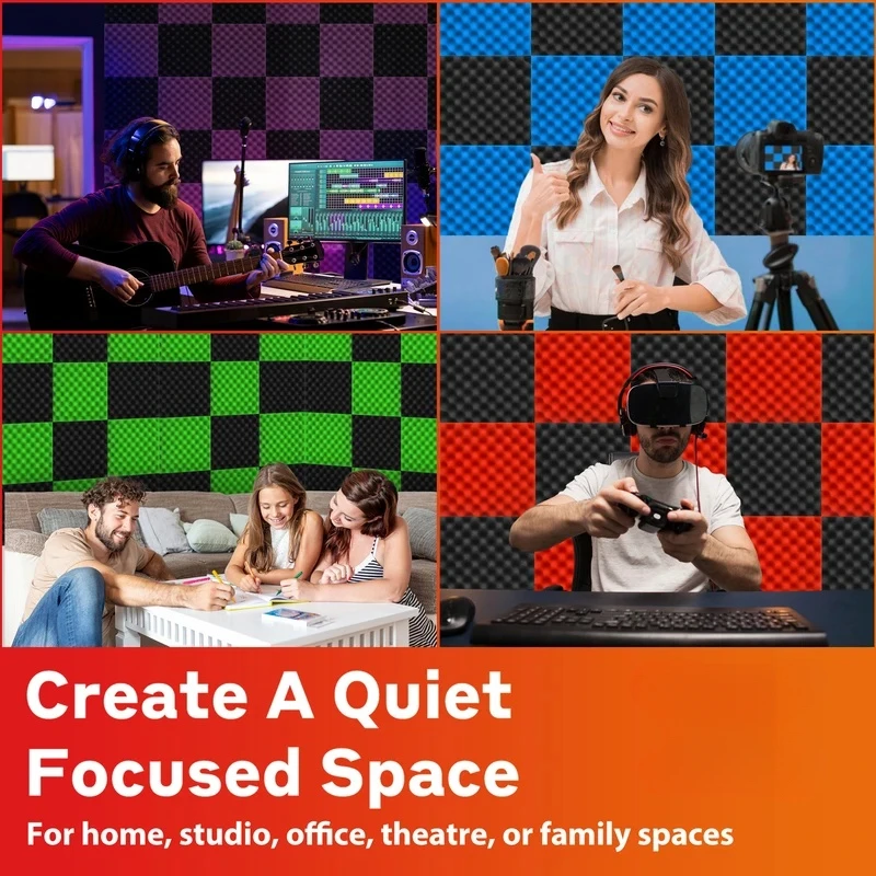 Panel Dźwiękochłonny 6/12/24/48 szt. Samoprzylepne Pianki Akustyczne do Studia, Izolacja Ścienna, Gąbka Akustyczna do Domu - TopDealBox