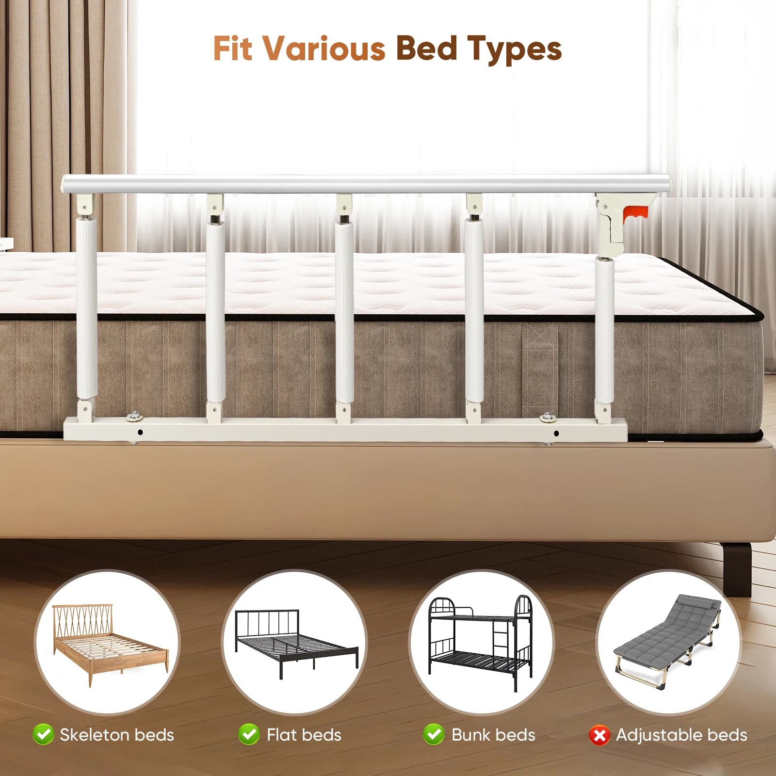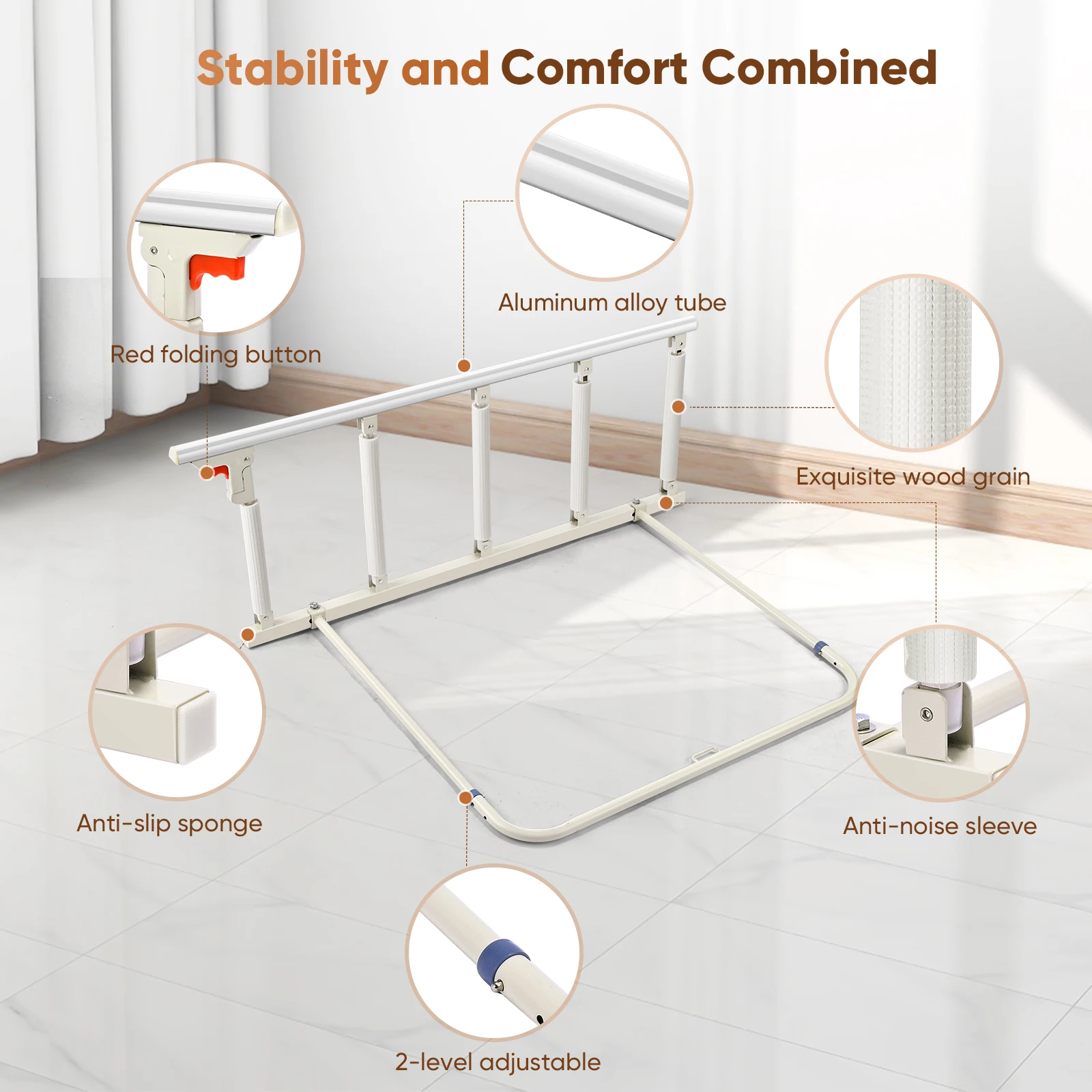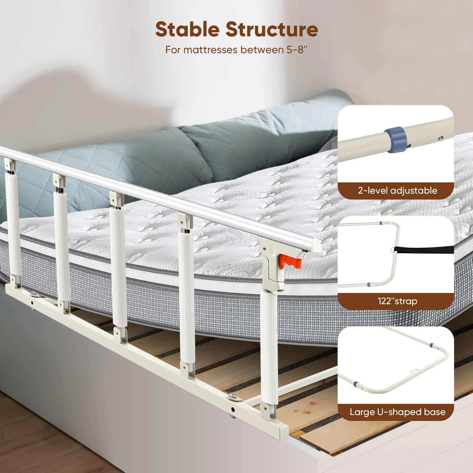 Podłokietniki przyłóżkowe 5-stopniowe dla seniorów, kobiet w ciąży, wspomagające podnoszenie dla niepełnosprawnych, podłokietniki przyłóżkowe. - TopDealBox