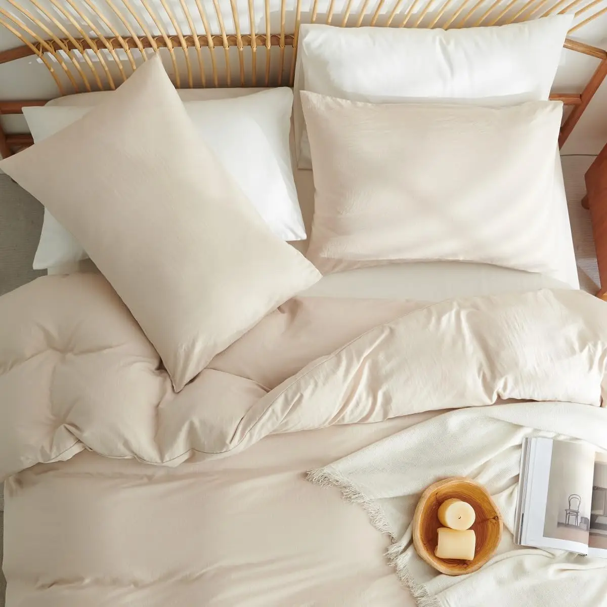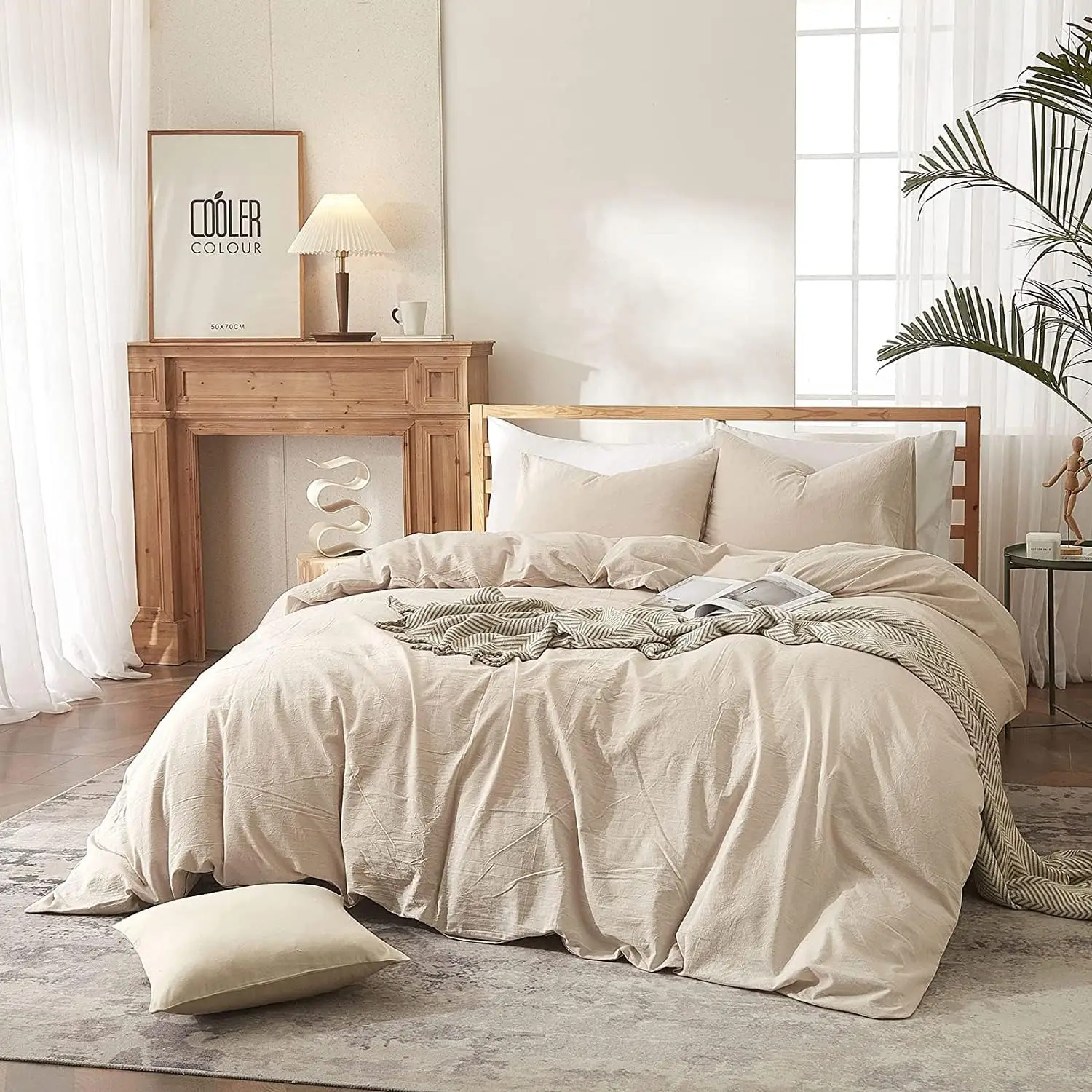 Pościel Lanqinglv 135 x 200 cm, 4-częściowa, bawełniana, beżowa, zestaw pościeli OEKO-TEX, 2 poszewki na kołdrę 135 x 200 cm z z - TopDealBox