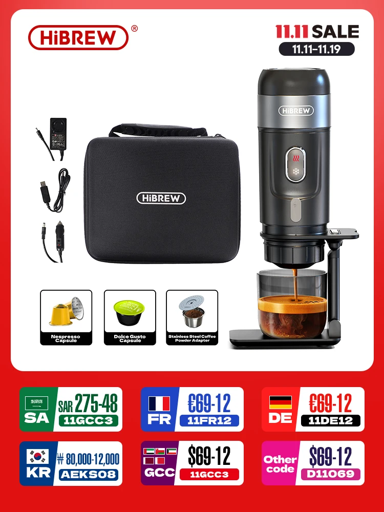 Przenośny ekspres do kawy HiBREW do samochodu i domu, ekspres do kawy Expresso DC12V Fit Nexpresso Dolce Pod kapsułka kawa mielona H4A - TopDealBox