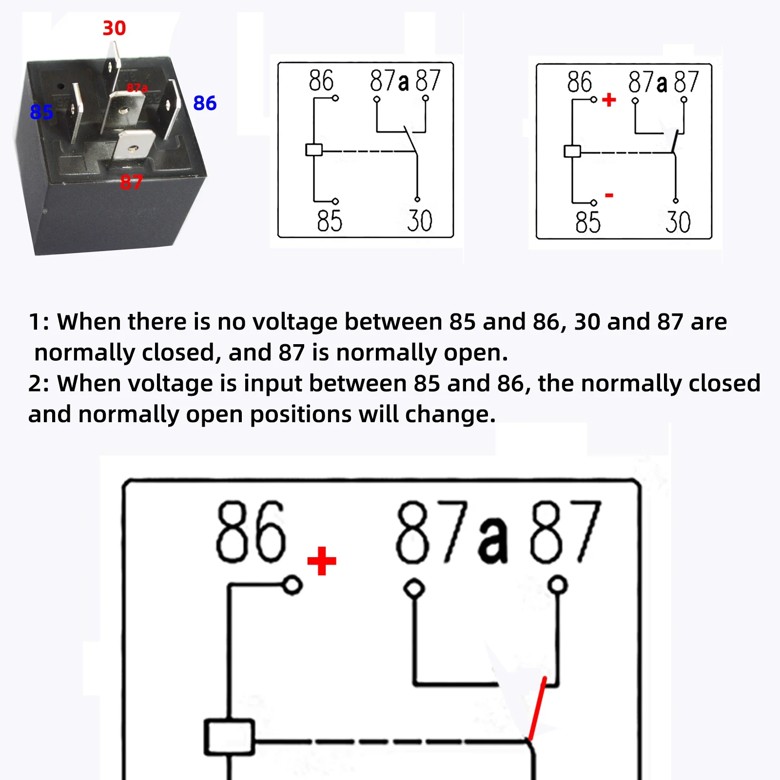 5 szt. przekaźników samochodowych 12V lub 24V 5-pinowych 40A z czarno-czerwonymi miedzianymi zaciskami, gniazdo przekaźnika samochodowego SPDT z kablem. - TopDealBox