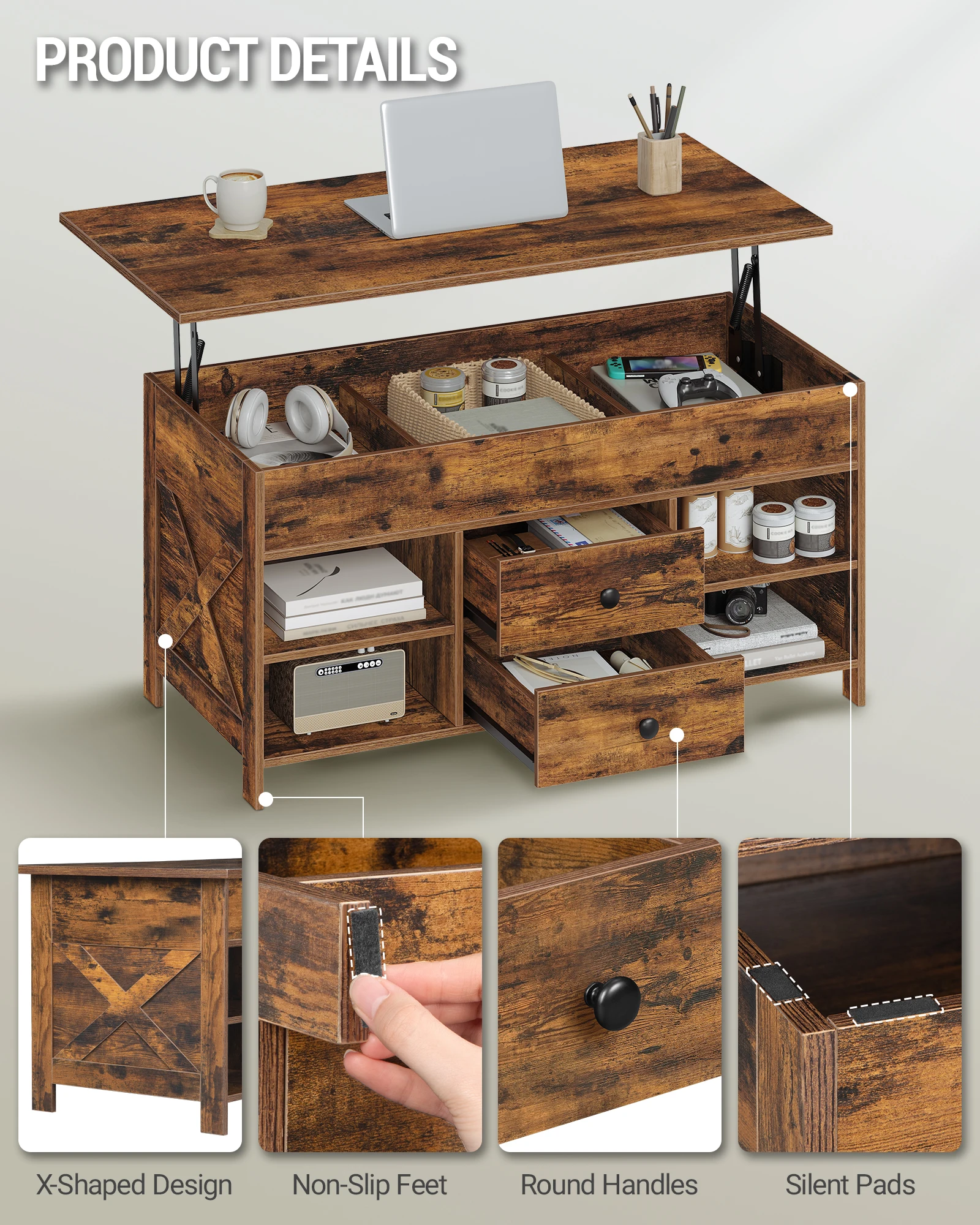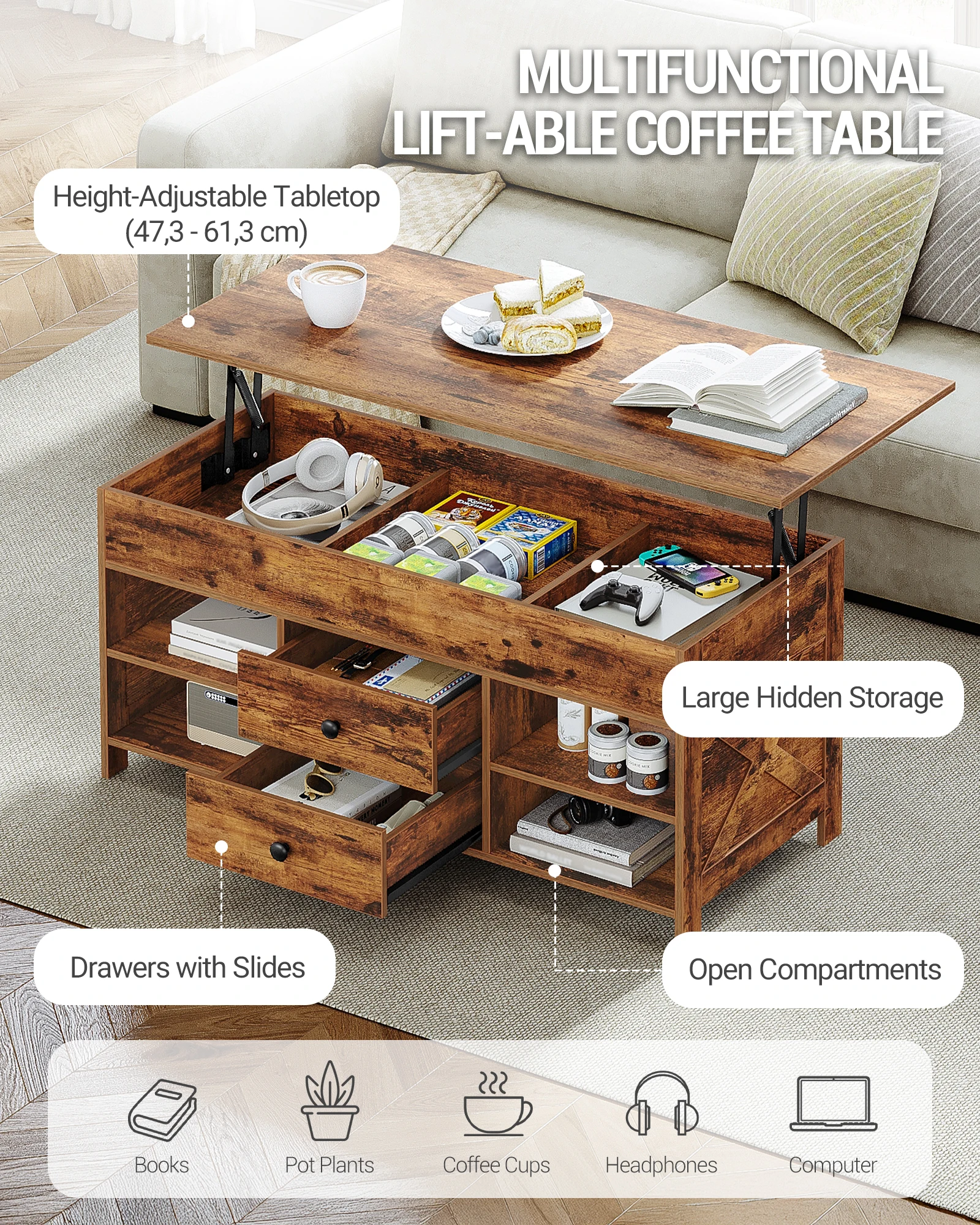 ♡Szybki podglądYITAHOME Biało-szary stolik kawowy 4 w 1 - regulowana wysokość, konwertuje się w stół do jadalni z miejscem do przechowywania i oświetleniem LED518995.39 PLNGorące★★★★★4.2