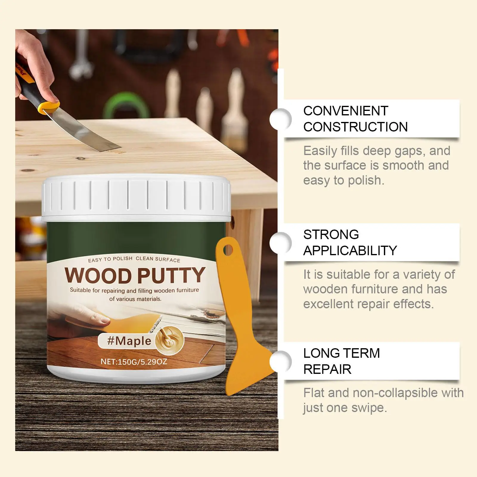 Szpachlówka do drewna 150g, szpachlówka do drewna do malowania, naprawa rys na podłogach drewnianych, wypełnianie drewna, naprawa mebli drewnianych, szpachlówka do drewna zewnętrznej - TopDealBox