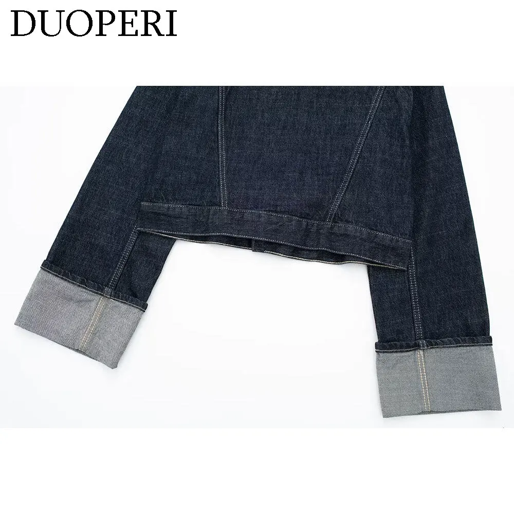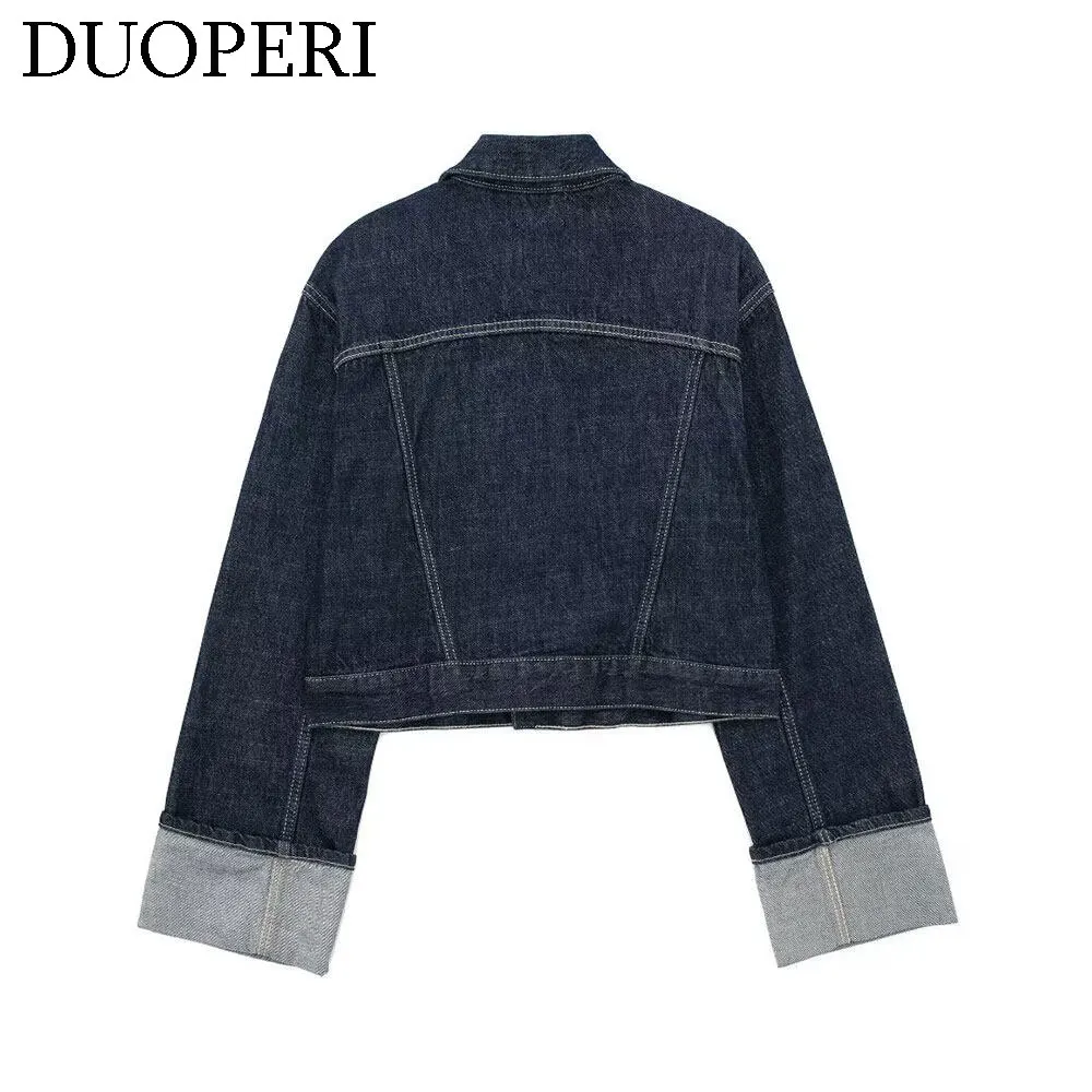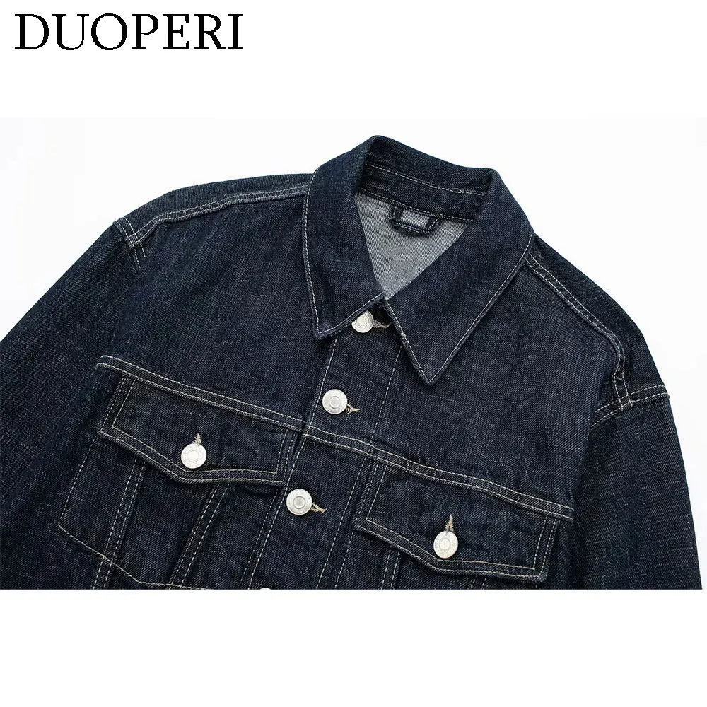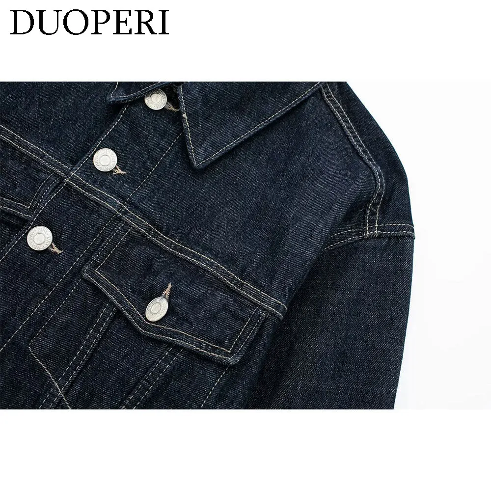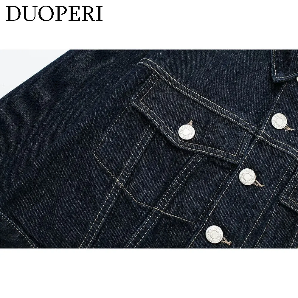 DUOPERI damskie modne jeansowe niebieskie kurtka jednorzędowa dekolt z klapami długie rękawy z kieszeniami damskie eleganckie damskie nieformalne okrycie wierzchnie damskie - TopDealBox