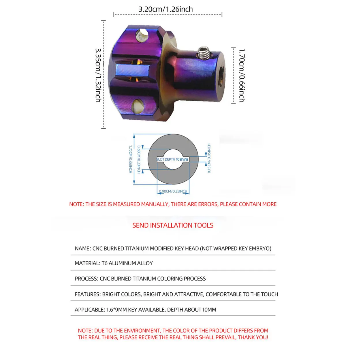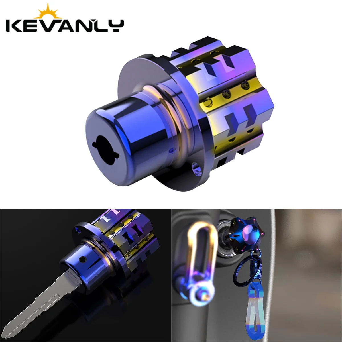 Uniwersalna ozdoba na kluczyk motocyklowy samochodowy, zmodyfikowana osłona kluczyka, niebiesko-fioletowy stop aluminium, tytanowy, spalony, sześciokątny bit do kluczyka z przekładnią. - TopDealBox