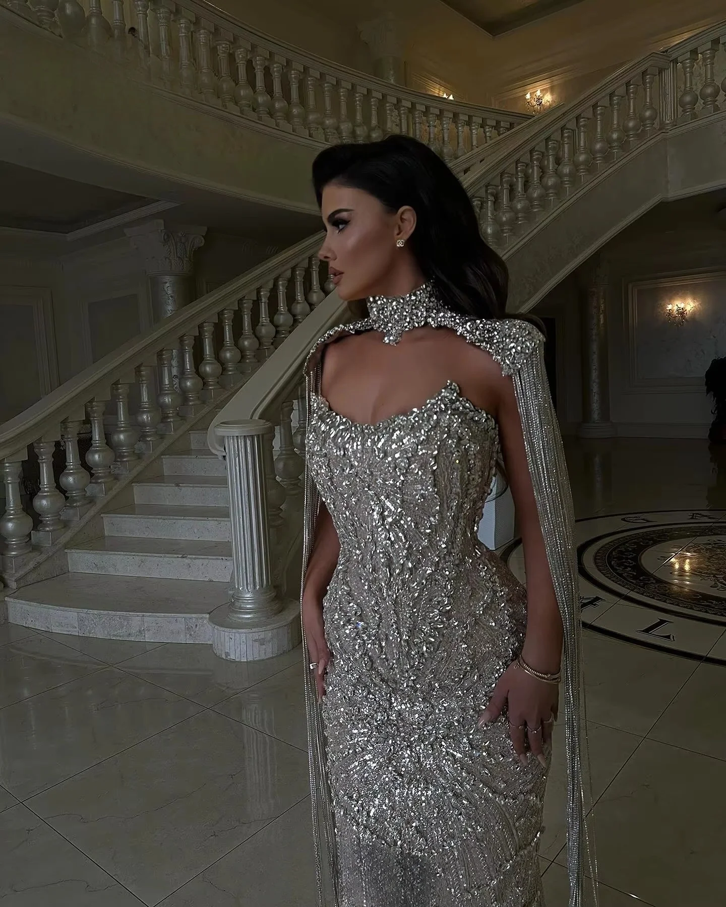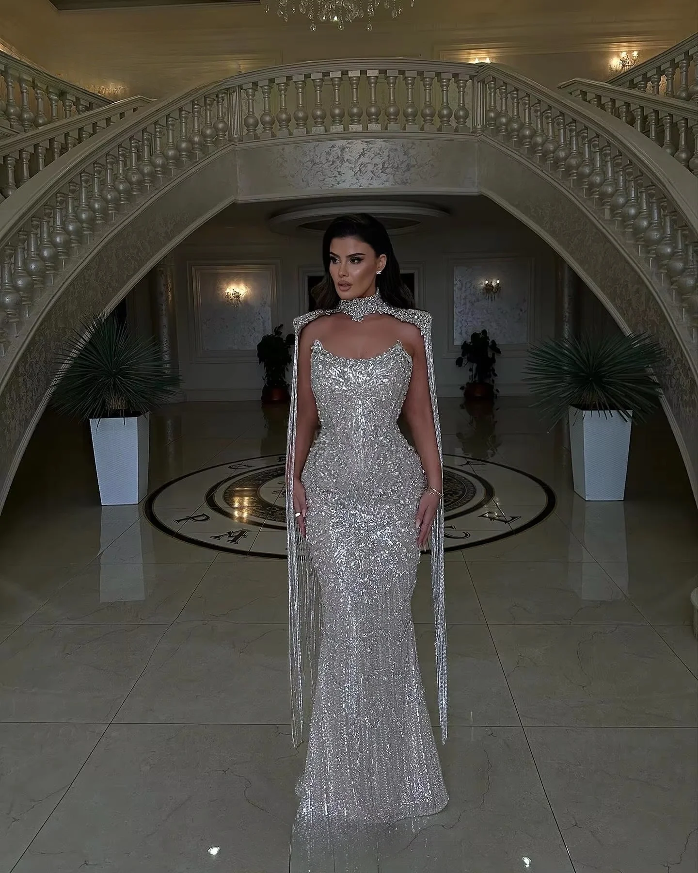 ↑Błyszczące srebrne suknie wieczorowe luksusowe kryształy suknie sławne syrenki z peleryną Vestidos Para Mujer suknia na bal maturalny - TopDealBoxSukienki wieczorowe na zamówienie, wysokiej jakości, eleganckie, vintage, słodkie, seksowne, różowe, syrenka, koraliki, koronka, formalne okazje, długa suknia, błyszczące.