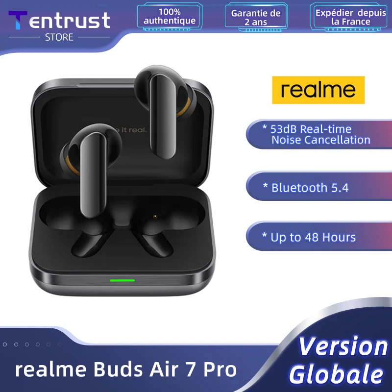 Wersja globalna realme Buds Air 7 Pro 53dB aktywna redukcja szumów prawdziwe bezprzewodowe słuchawki 48-godzinna bateria słuchawki Bluetooth 5.4 - TopDealBox