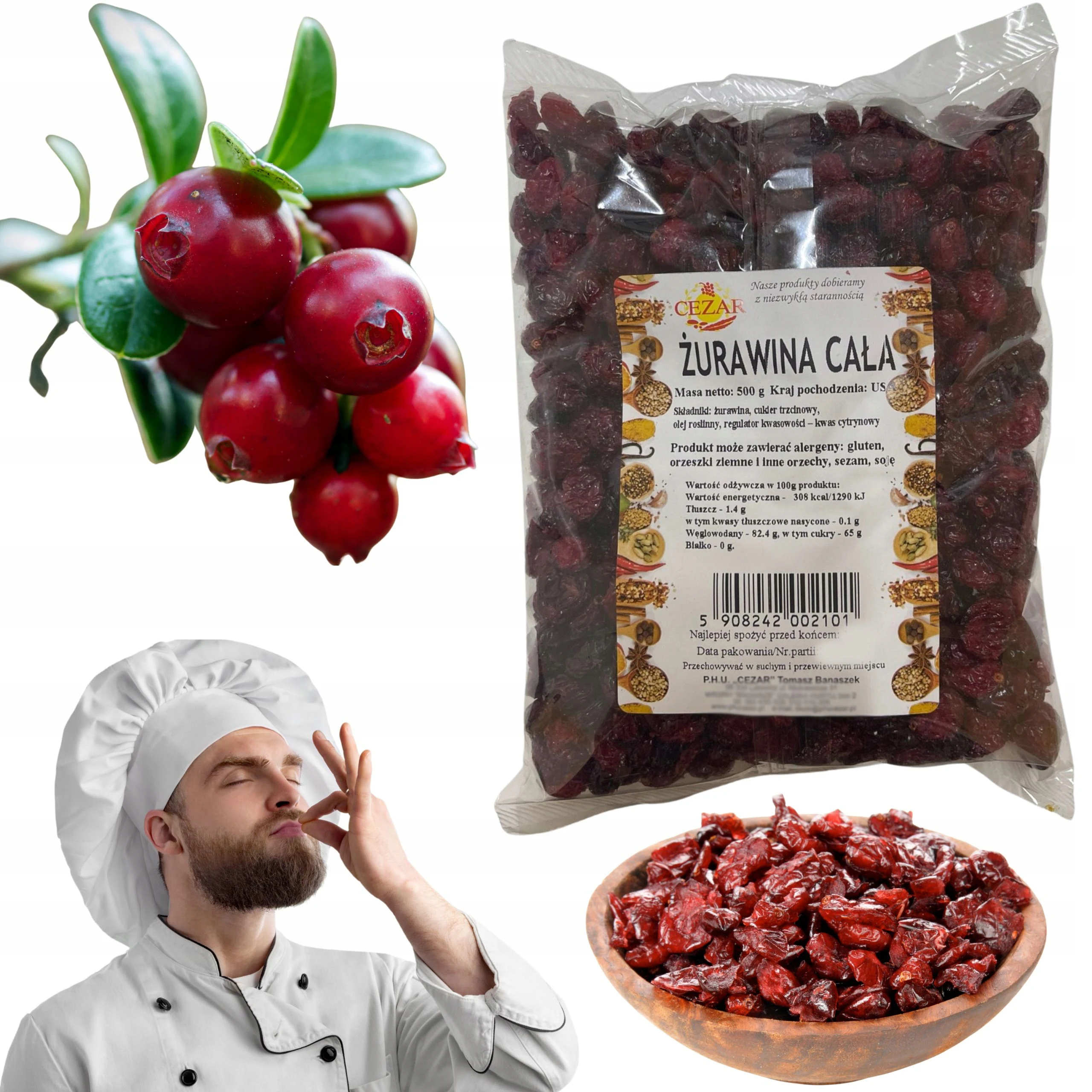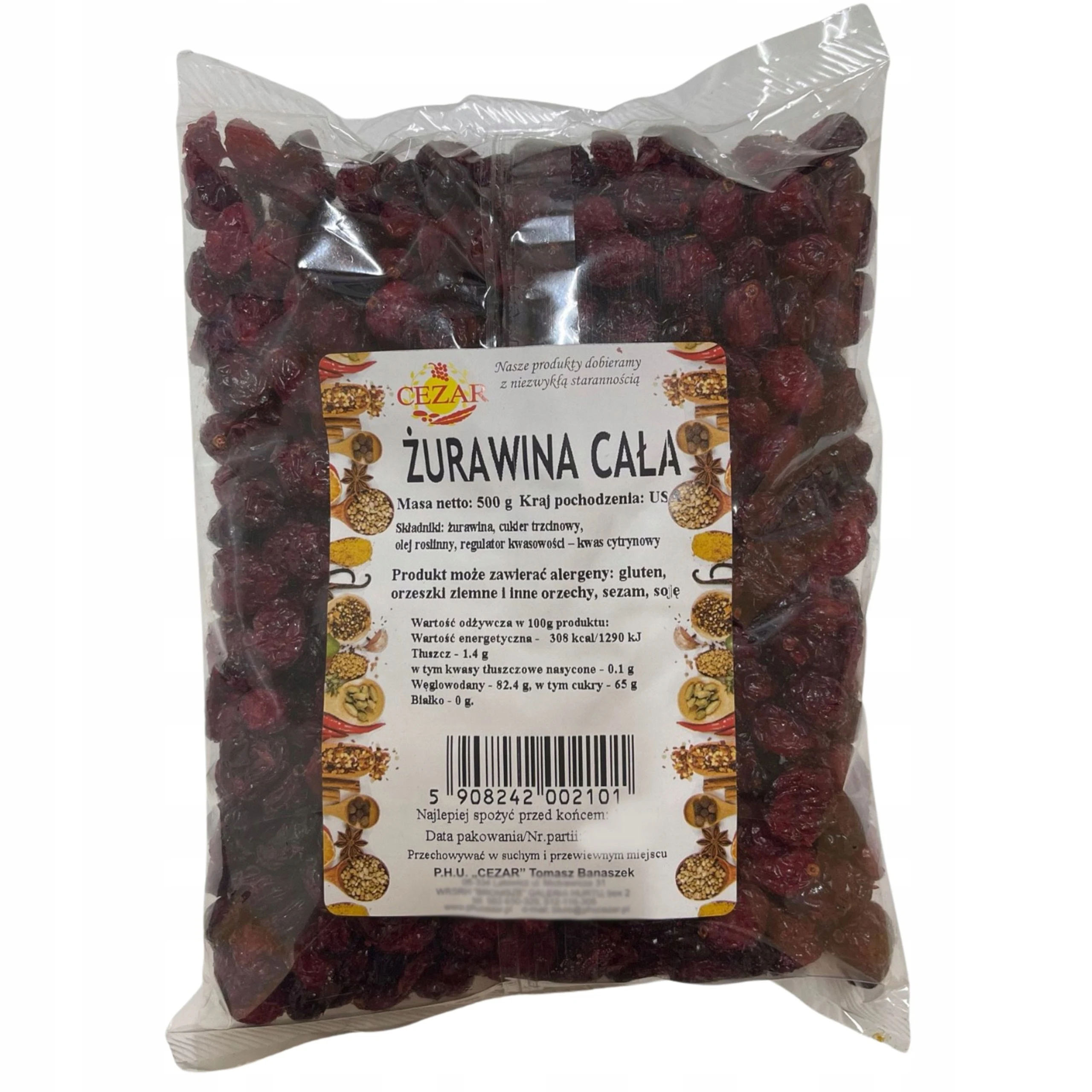 + ŻURAWINA CAŁA SUSZONA 500G całe owoce suszone + - TopDealBox
